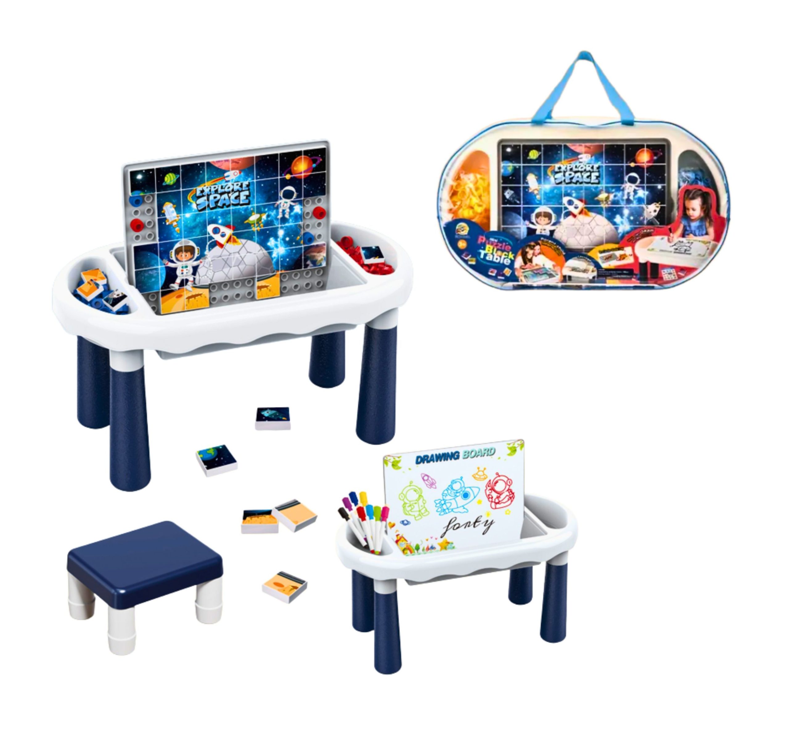 Blast off into creativity with this Space Puzzle & Drawing Table for kids aged 3+. Featuring planets, rockets, and astronauts, it offers six ways to play—puzzles, drawing, writing, magnetic fun, and more.