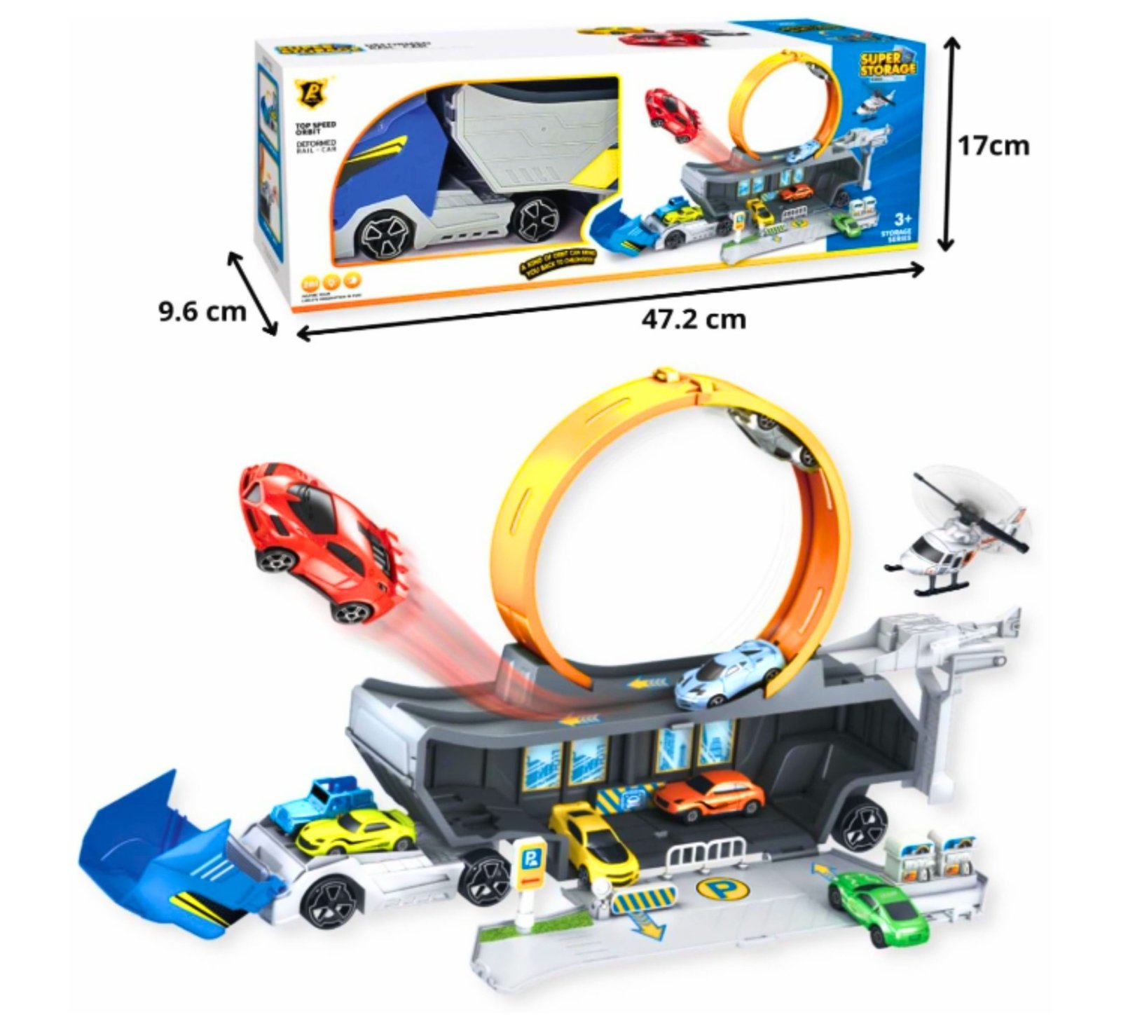 – 🚗 Includes multiple toy cars & a helicopter